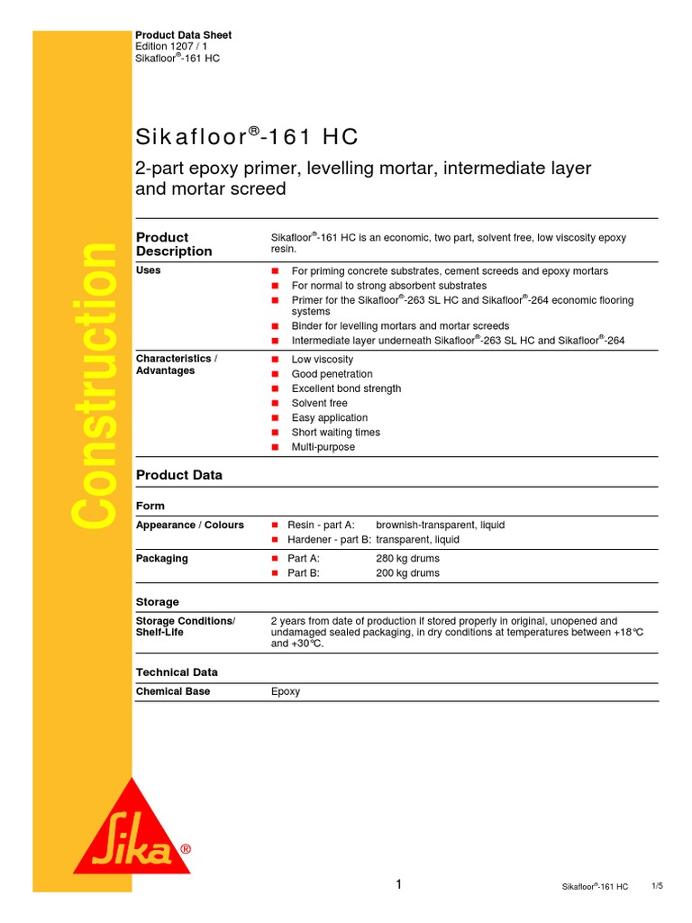 Product data sheet edition 21 november 2011 1 sikafloor 264 t 1 7 construction.
