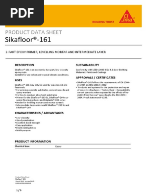 Product data sheet sikafloor 264 versatile pigmented epoxy resin for high performance floor finishes product description sikafloor 264 is a pigmented two part low viscosity self priming see priming section epoxy coating binder used for smooth and textured coatings and or broadcast overlayments.